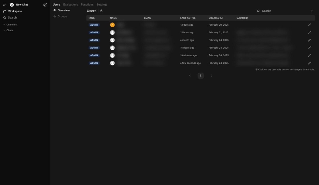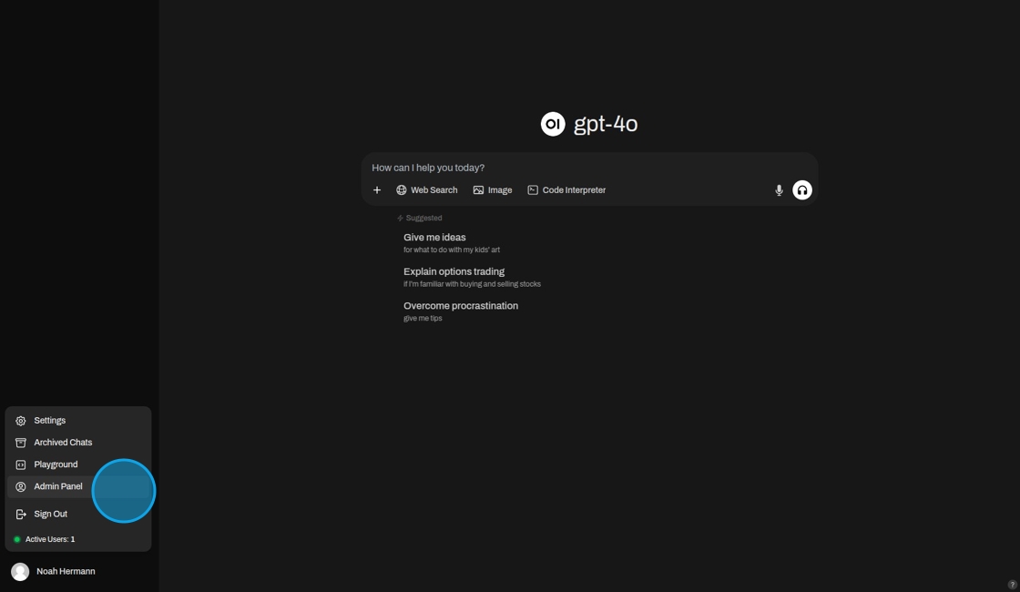The Admin Panel is used to manage users and functions, evaluate models, and holds the settings for all features. More information on each of these topics can be found on their specific page.