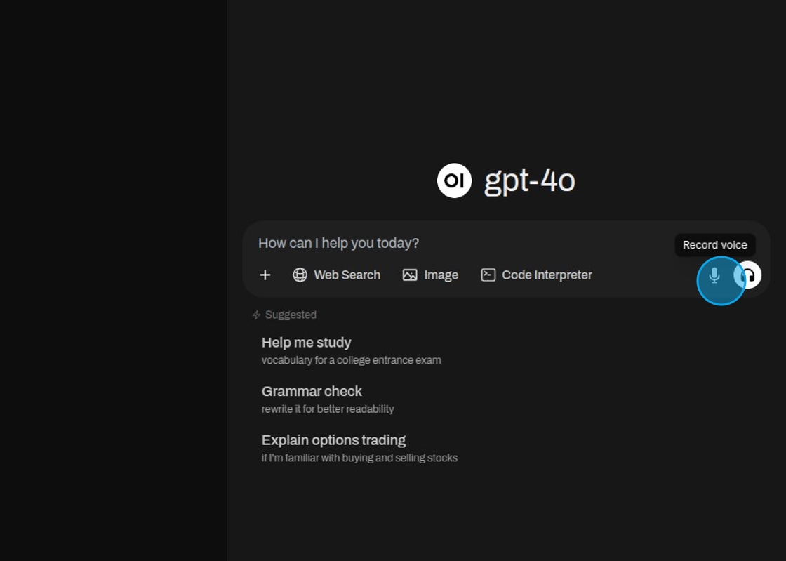 The recorded audio will be displayed as input which can be altered or directly sent to the model.