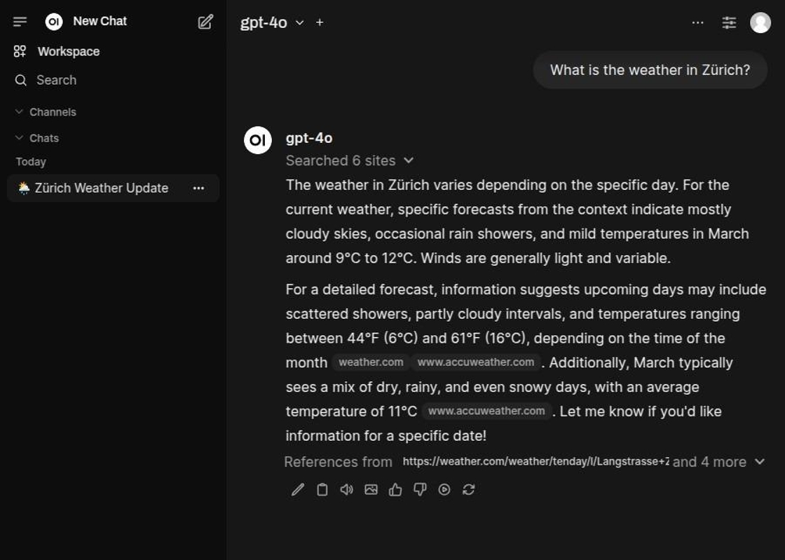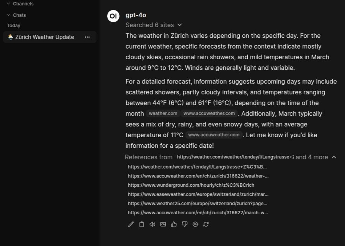 The model will take some time coming up with a search query and then executing that search. After which it will output what it found.